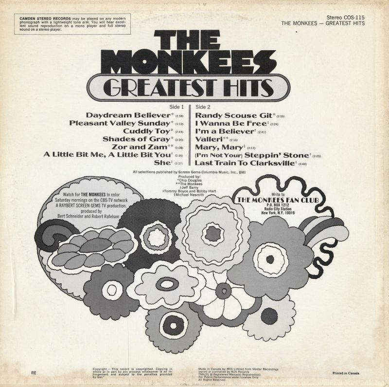 Now going back to my original question, was the label considering a re-release of the Monkees catalog later on down the road? Because RCA re-released The Monkees Greatest Hits with an entirely different cover,